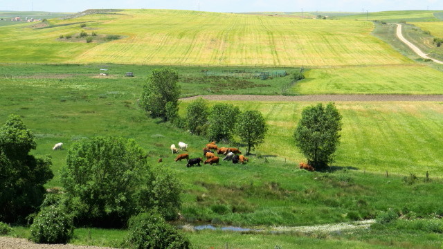 río Milanos, con un caudal exiguo para la época. A la derecha, Cordel de Abades. |