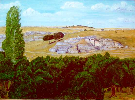 Al fondo, camino y cruces del calvario.
